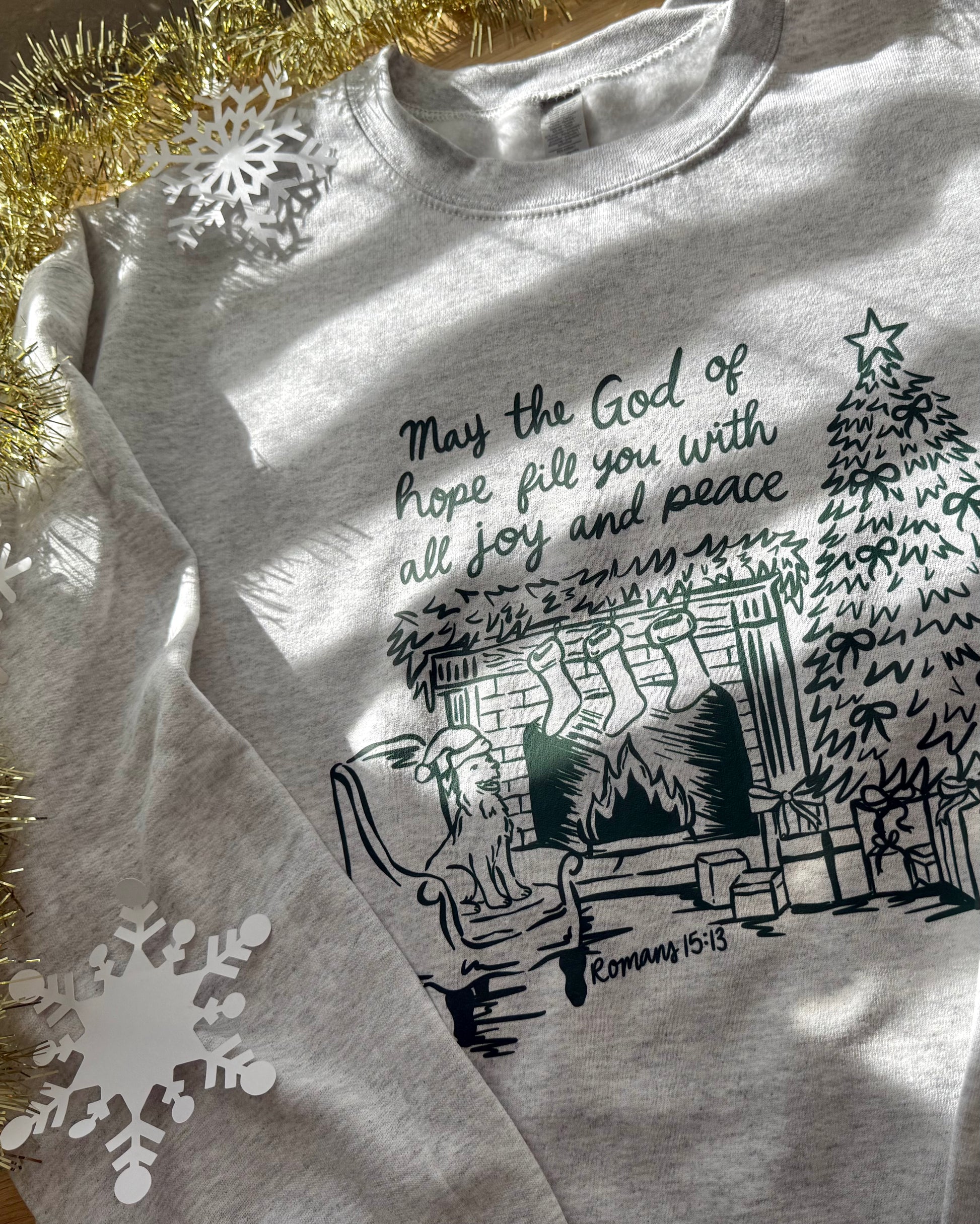May the God of hope fill you with all joy and peace this Christmas season! Share the love of Christ with those around you with this crewneck :)